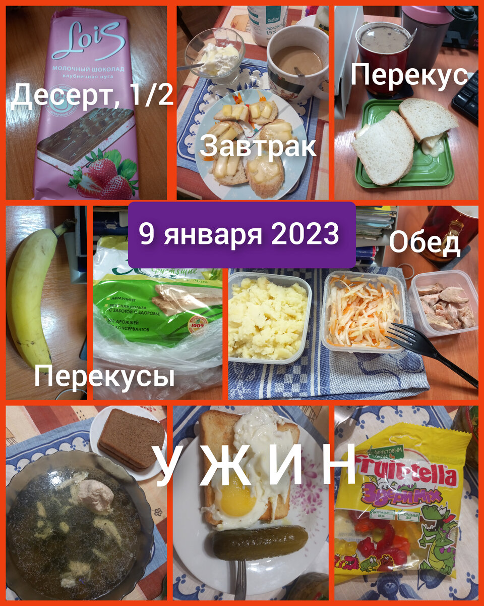 Приветствую всех на этом канале, где я худею без диет и учусь любить себя Итак, вчера. Первый день после длинных выходных, когда ты хочешь спать, а надо работать. И организм, привыкший уже к каникулам, снова впадает в стресс😁 Но перейдём к питанию. Из-за сбитого режима сна есть хотелось довольно сильно, я даже чуть не пошла за перекусом, но в столовой всё закончилось уже к 15.30, а в магазин идти отговорили коллеги. Поэтому вот так: Завтрак: творог со сгущёнкой, бутерброды с сыром, кофе Перекус: бутерброды с сыром, кофе, шоколад Обед: пюре, квашеная капуста, рыба Перекус: хлебцы, банан Ужин: куриный бульон, куриное филе, хлеб, яйцо, соленый огурец, мармелад Учитывая праздничную "тяжелую" еду, организм был просто счастлив от бульона и филе. Также вернулась к 2 л воды в день. На выходных я ощутимо так не допивала норму, а в моём случае это сразу отражается на коже, на обмене веществ и на общем самочувствии. А ещё я сделала зарядку и тренировку по видео! Но не обошлось и без минусов. Т