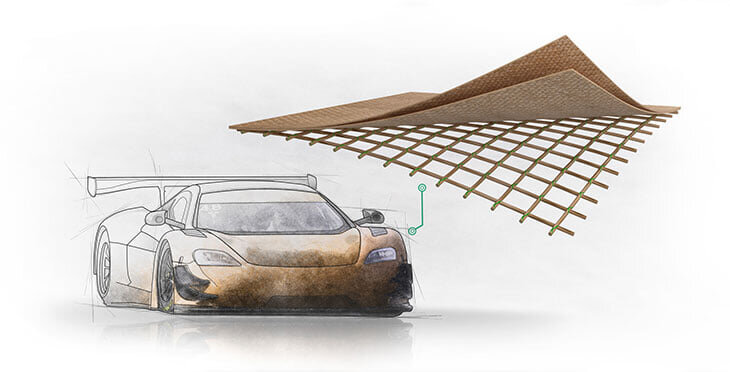 Секрет льна – в трубчатой структуре волокон специального сорта растения и особых технологиях плетения от швейцарской компании Bcomp. Если по-простому, компания создает особое армирующее плетение из льняных волокон и формирует ими трехмерную решетчатую структуру, на которую уже прикрепляет «обычные» нити растения.