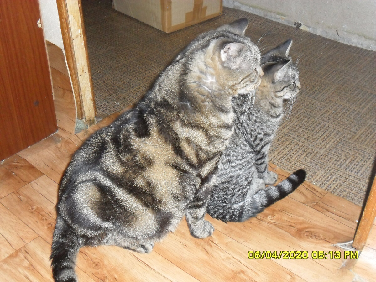 Сегодня речь пойдет о Плюше, старшенькой нашей) Папина дочка! Её он признал, когда знакомился с детьми: обнюхал всех, а её лизнул - "моя"! Ребёнок получился самым крупным и упитанным (прозвище - Бегемотик), бесконфликтным лизунчиком. Папе мордочку полировала, а он терпел... "Я старшая, я за всех отвечаю!" - значит, нужно всех вылизать и собрать в кучу! С возрастом это дело уже не проходит, все самостоятельные и лишних ласк не любят. Когда девушки подросли и стали взрослыми по кошачьим меркам, мама Манюня вздумала расставить приоритеты: кто в доме хозяин?! Мы, как обслуживающий персонал, естественно не рассматривались... Выразилось это желание неоригинально: жуткий вопль "Ау-у-у-ау!", хвост распушается до песцового состояния, на спине драконий гребень - и в атаку! Кто не спрятался, я не виновата! Почему-то первой под раздачу попадала любимая Лялечка. Видимо, Манюня видела в ней своё отражение - и во внешности, и в характере. А вот полосаток почти не трогала. Но однажды... В образе