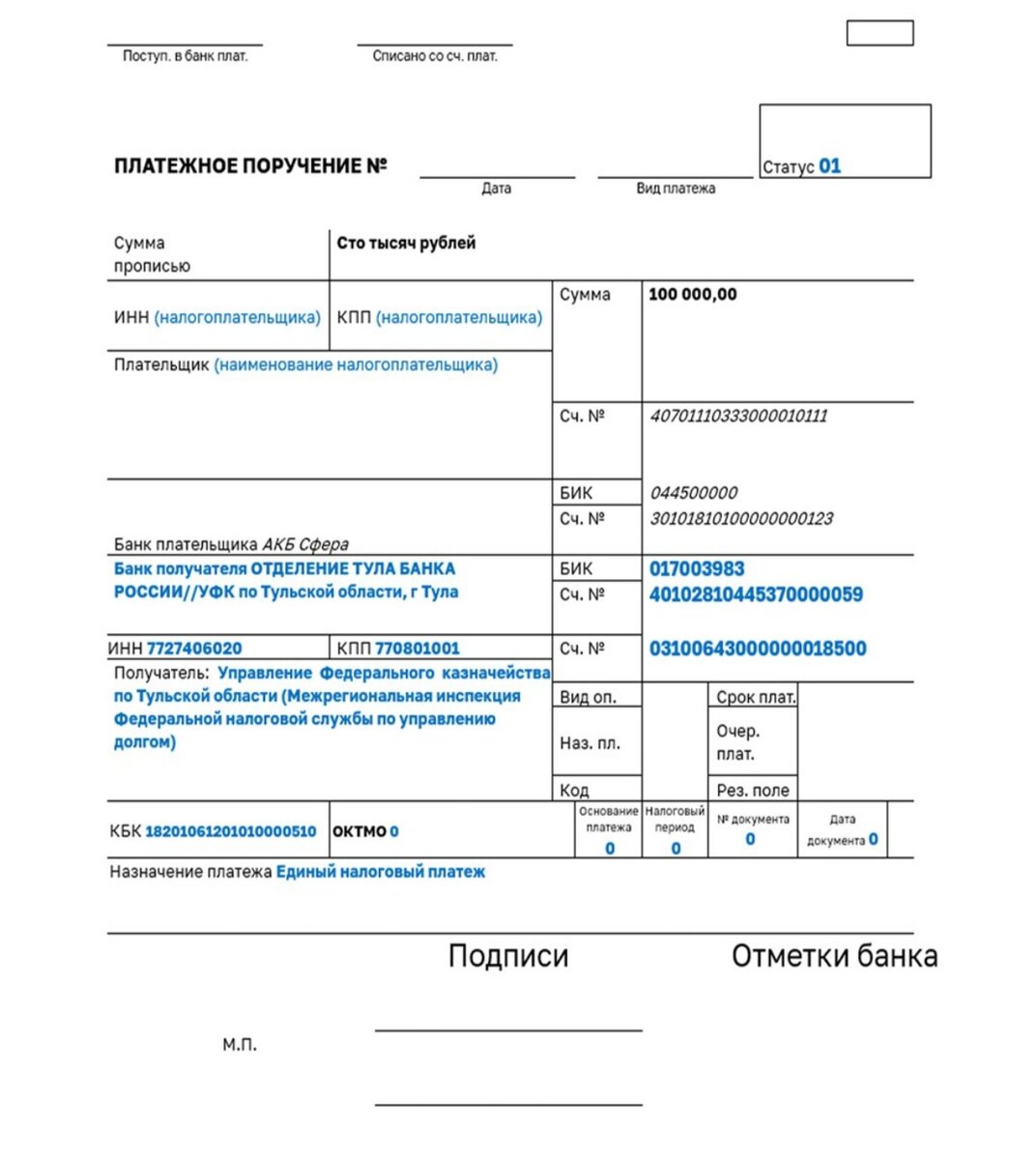 Обратите внимание, что сначала погашается недоимка, начиная с налога с более ранним сроком уплаты, затем — с текущим сроком уплаты, а только после этого — пени, проценты и штрафы. Если денег недостаточно и сроки уплаты совпадают, единый платеж распределяется пропорционально по каждому налогу. ✅Реквизиты плательщика.