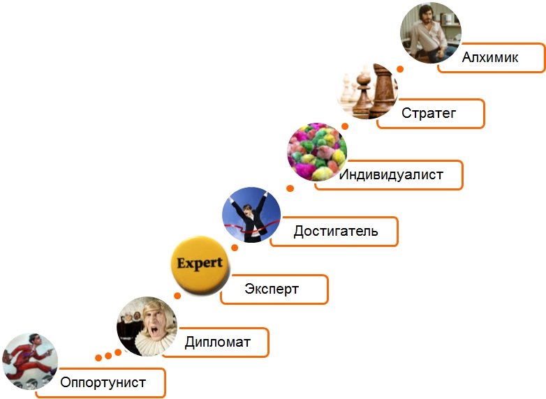 Индивидуалисты, Стратеги и Алхимики — более продвинутые руководители, чем Эксперты и Достигатели. Коротко эти логики действия можно охарактеризовать так: