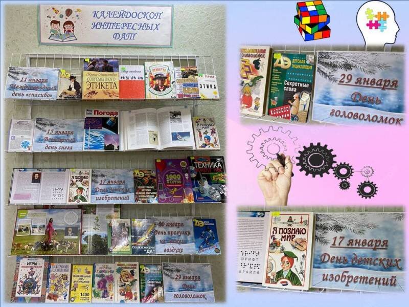 В отделе обслуживания учащихся среднего и старшего возраста Луганской библиотеки для детей продолжает работать книжная выставка «Калейдоскоп интересных дат», где сотрудники отдела знакомят юных читателей с необычными и мало кому знакомыми праздниками этого месяца: