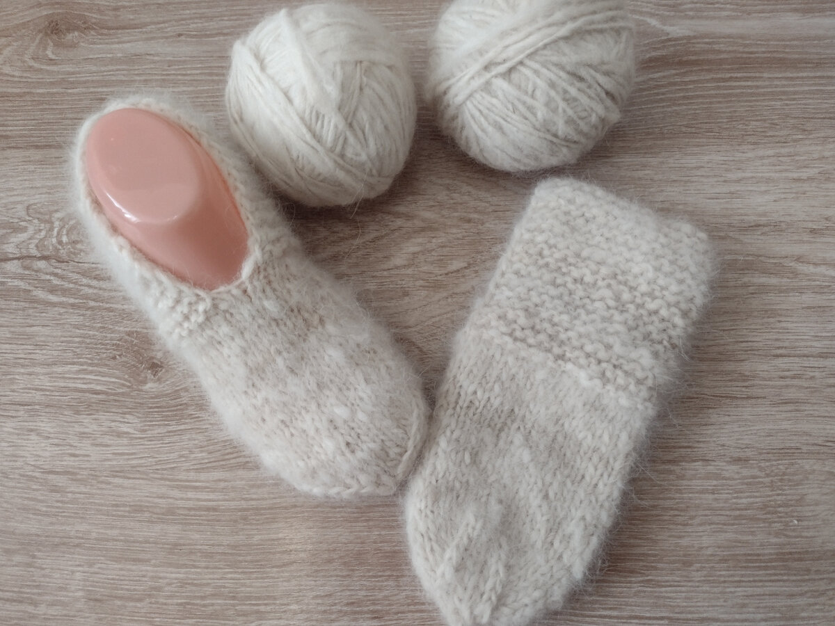 Приветствую всех! В этом году первым готовым изделием у меня была шапка, да, именно шапка, не носки😆. Но пока шапка сохнет, покажу вам следки из собачьей шерсти. Пряжу заказчица принесла сама, шерсть пряла ей какая-то женщина. Пряжа сопряжена неравномерно, но это не делает ее хуже. Мягкость и нежность шерсти обалденная! Следочки вязала своим любимым способом, ранее рассказывала о нем. Настолько мне понравилось полотно из собачьей шерсти, что я сразу вспомнила, что у меня есть прялка, шерсть и шерсть уже спряденная. А ещё есть необходимость в теплых варежках, в очень теплых😆