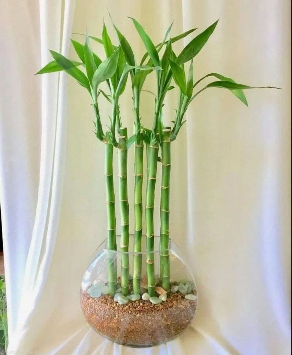 Lucky Bamboo, сорт драцены сандерианы (Dracaena sanderiana), является декоративным растением с витым стволом и зелеными листьями-побегами. Одно растение очень красиво смотрится в вазе, не менее красиво связанным в пучки. Его можно выращивать и как обычное комнатное растение.