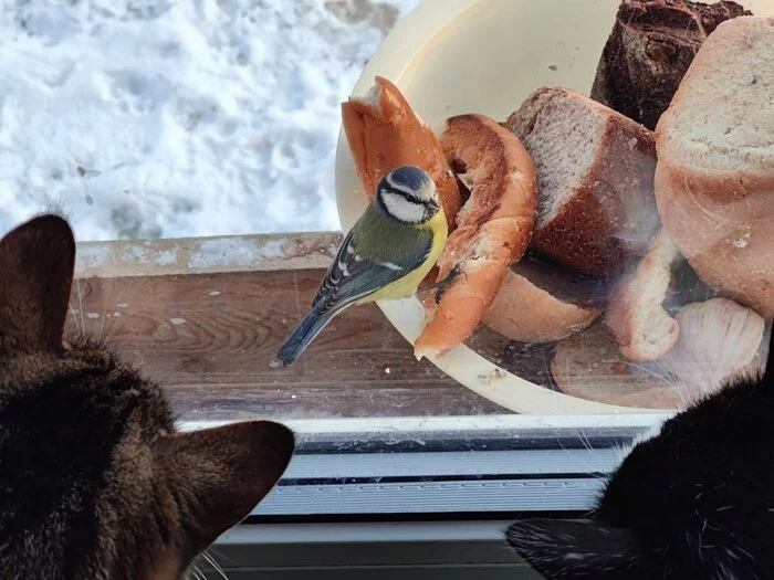 П.С. Хлеб для коз (знакомый дедушка держит несколько), но я никак не могу его донести до них и птичка ест творог (там остатки ватрушки). Основная еда такая