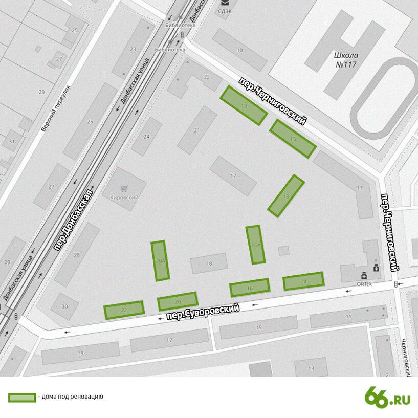 Соответствующий проект планировки в квартале Донбасской — переулков Черниговского — Суворовского утвердил мэр Екатеринбурга Алексей Орлов. В постановлении сказано, что площадь проектируемых объектов капстроительства составит 76,6 тыс. кв. м, в том числе общая площадь бизнес-объектов — не менее 3,8 тыс. кв. м. Структура жилищного строительства, описанная в официальном документе: общая площадь жилых помещений — 74 761 кв. м, в том числе площадь объектов нового строительства — 63 300 кв. м. Также указано, что расчетная численность населения в границах территории — 2191 человек, в том числе в проектируемой застройке — 1809 человек. Эту площадку в рамках комплексного развития территорий (КРТ) застроит компания «Брусника». В пресс-службе девелопера корреспонденту 66.RU рассказали, что на территории будет новый квартал с пятью жилыми домами средней этажности (здания от 7 до 12 этажей) с подземными паркингами, коммерческими помещениями и садиком на 100 мест (строить его начнут в 2023 году). «А