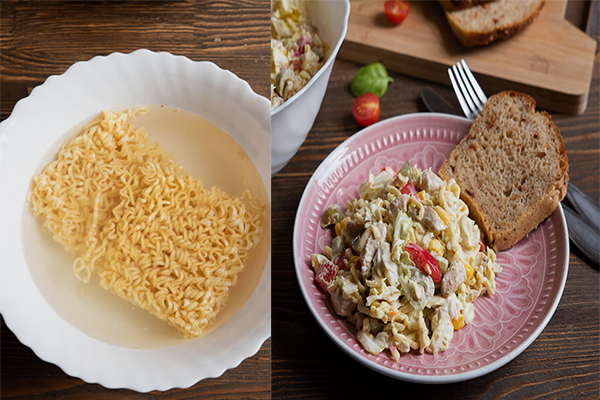 Салат с вермишелью, филе курицы, кукурузы, пекинской капусты и сладкого перца – отличный выбор если хотите попробовать чего-то новенького. Его невероятно легко и быстро приготовить. Для приготовления этого салата я использовал лапшу быстрого приготовления со вкусом сыра. Конечно, если вы не любите вермишель, то можете просто сварить спагетти. Ингредиенты для приготовления:
