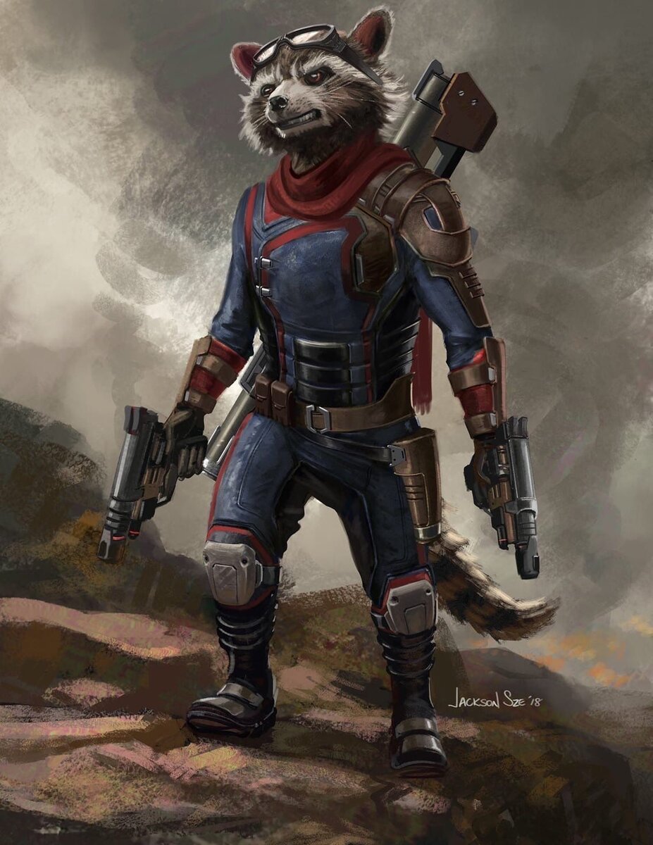 Енот Ракета (как вариант — Реактивный Енот) появился в комиксах Marvel в 1976 году, в качестве отсылки к песне Битлз «Rocky Raccoon». Поначалу его так и звали – Рокки. Он появлялся в нескольких приключениях разных персонажей и ему выделяли собственные серии комиксов, а со временем он начал неразрывно ассоциироваться со Стражами Галактики. Давным-давно, в далёкой галактике жила-была команда опытных психиатров. Психиатры эти создали огромную психушку, куда собрали кучу психов. Только безобидных, не маньяков каких-нибудь. И зверушек всяких, чтобы психам грустно не было. А потом им финансирование урезали. Психиатры оставили роботов-надсмотрщиков и улетели. А потом рядом с планетой (ну, не настолько рядом, чтобы угробить её) взорвалась звезда. От притока радиации роботы резко поумнели. Им надоело обслуживать психов и они решили основать собственный город. Но за психами нужен уход, поэтому роботы похимичили с генетикой и дали зверушкам разум, характер и человеческие замашки. Так на свет появ