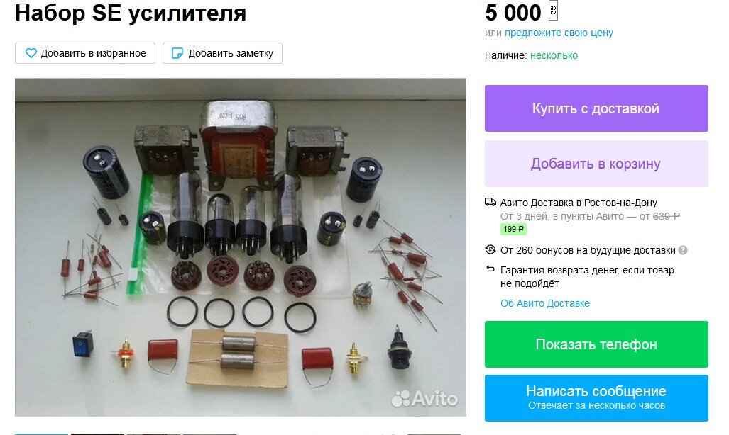 Чуть подороже, Продавец предлагает усилитель на двух параллельных радиолампах 6П3С, но не указывает какой выходной трансформатор.