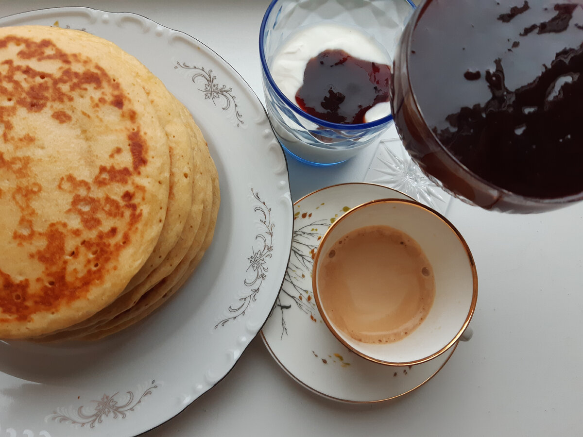 О своих запасах продуктов и планах по бюджету на питание в январе я рассказывала ЗДЕСЬ КАТАЛОГ РЕЦЕПТОВ - здесь все рецепты и полезные статьи по экономии, которые есть на канале Закупка № 1 -Метро, рынок, Яндекс Маркет, Пятерочка, Дикси, Верный Сегодня был запланирован День шоппинга. Таковых у нас практически не бывает, пару раз в году разве что по необходимости. На завтрак у нас блинчики на ряженке и кукурузной муке. Это ооочень вкусные блины со сливочным вкусом, пышные, мягкие, толстенькие, быстро пекутся. Одни из самых любимых блинов. Но рецепта почему-то до сих пор на канале нет.😄 Несколько лет назад я их придумала сама. И рецепт получился очень удачным. Тогда как раз кукурузную муку всюду добавляла на замену пшеничной. Кроме блинов - йогурт со сливовым джемом, тот же джем в креманке к блинам, сметана, кофе После завтрака мы с мужем уехали практически на целый день. С собой взяли только шоколадку. Сыну как раз на обед оставалась порция куриного супа с овсянкой. Домой вернулись