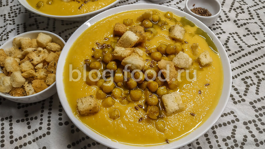 Всем привет. Сегодня у нас ещё один вариант кокосового супчика — на этот раз с нутом и сельдереем. Продуктовый набор: Морковь и сельдерей очищаем, натираем на крупной тёрке. Лук режем кубиком, чеснок рубим мелко. Обжариваем лук, морковь, сельдерей и чеснок на сильном огне в течение пяти минут. Наливаем 400 мл горячей воды, добавляем кокосовое молоко, кардамон, солим, перчим по вкусу, доводим до кипения, варим на слабом огне 10 минут. Пробиваем блендером до однородной консистенции. Нут отвариваем в течение пяти минут. Сливаем воду, добавляем карри, немного масла и обжариваем на сильном огне пару минут, постоянно помешивая. Разливаем суп по тарелкам, подаём с семенами льна, обжаренным нутом и сухариками. Приятного аппетита! Видеоверсия рецепта:
