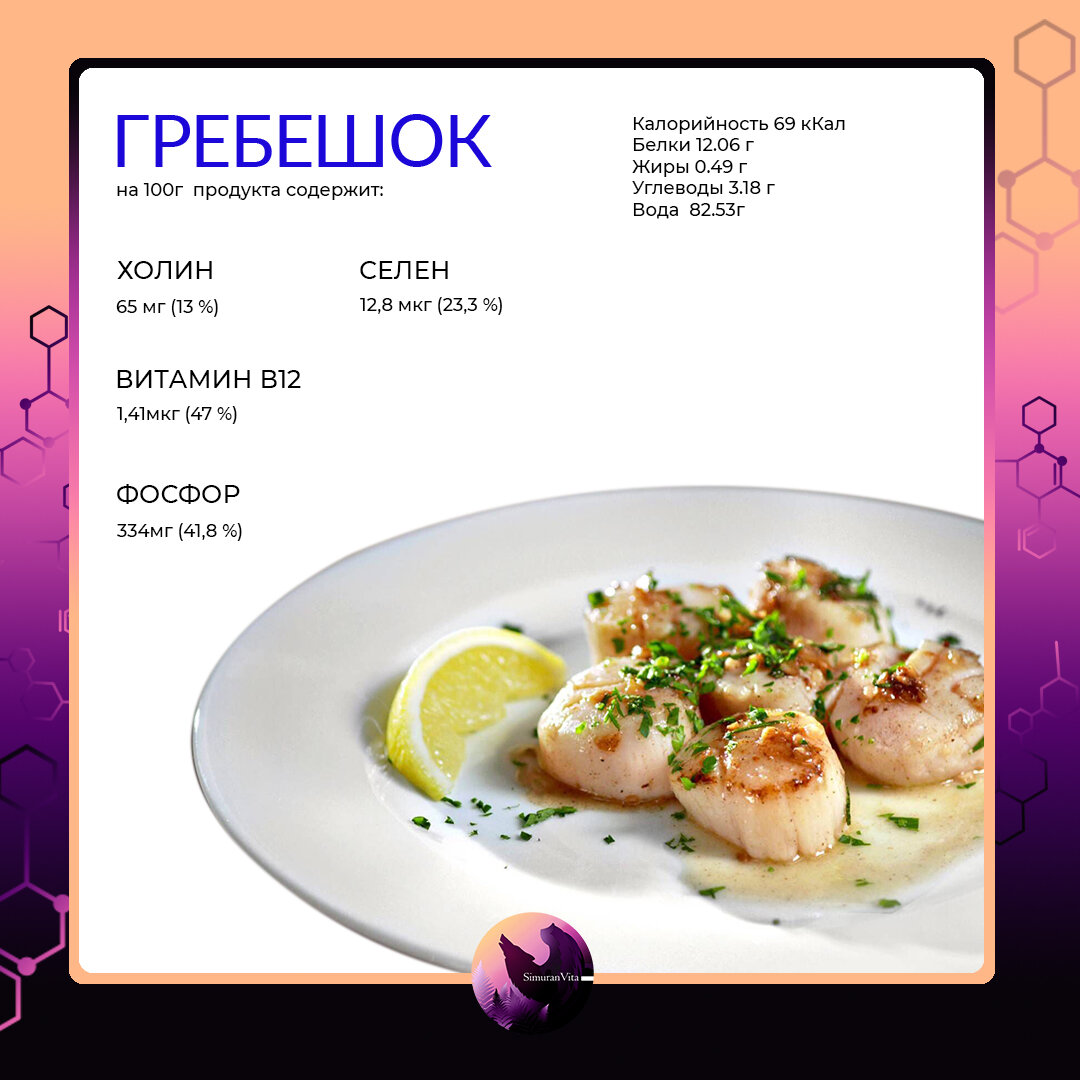 ГРЕБЕШКИ И ФОСФОР ⠀ Фосфор относится к структурным (тканеобразующим) макроэлементам, его содержание в организме взрослого человека составляет около 700 г. Большая часть фосфора (85-90%) находится в костях и зубах, остальное – в мягких тканях и жидкостях. Около 70% общего фосфора в плазме крови входит в органические фосфолипиды, около 30% - представлено неорганическими соединениями (10% соединения с белком, 5% комплексы с кальцием или магнием, остальное – анионы ортофосфата) ⠀ Биологическая роль фосфора фосфор входит в состав многих веществ организма (фосфолипиды, фосфопротеиды, нуклеотиды, коферменты, ферменты и пр.) фосфолипиды являются основным компонентом мембран всех клеток в организме человека в костях фосфор находится в виде гидроксилапатита, в зубах в виде фторапатит, выполняя структурную функцию остатки фосфорной кислоты входят в состав нуклеиновых кислот и нуклеотидов, а также в состав аденозинтрифосфорной кислоты (АТФ) и креатинфосфата – важнейшие аккумуляторы и переносчики э