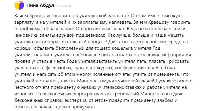 Сегодня предлагаю обсудить комментарий, в котором изложена вся правда про жизнь учительства в последнее время.