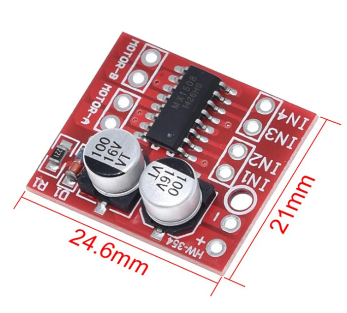 Важная информация! Почему именно MX1508 (L298N mini)? Ну тут все просто: дешевый, доступный, в меру надежный (за свои 90р так вообще за гранью), да и управлять им просто! Из недостатков только напряжение питания моторов, и то условно. Мы пробовали разные драйверы но этот нам понравился больше всего. Если посоветуете что-то получше, будем только рады! Приступим! На драйвере 6(!) пинов на вход и 4 на выход. (см. фото) ВХОД: