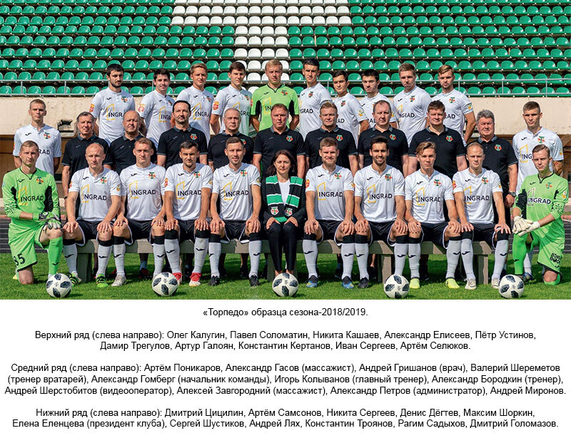 ЧЕМПИОНАТ РОССИИ (2-я лига / 2-й дивизион, группа «Центр») ⚽ 26.07.2018. «Торпедо» - «Строгино» Москва - 1:0 ⚽ 03.08.2018. «Салют» Белгород - «Торпедо» - 0:1 ⚽ 11.08.2018. «Торпедо» - «Рязань» Рязань - 1:0 ⚽ 17.08.2018. «Сокол» Саратов - «Торпедо» - 0:2 ⚽ 26.08.2018. «Торпедо» - «Квант» Обнинск - 1:0 ⚽ 02.09.2018. «Торпедо» - «Калуга» Калуга - 3:0 ⚽ 10.09.2018. «Торпедо» - «Химик» Новомосковск - 2:1 ⚽ 15.09.2018. «Металлург» Липецк - «Торпедо» - 0:0 ⚽ 22.09.2018. «Торпедо» - «Динамо» Брянск - 1:0 ⚽ 30.09.2018. «Ротор-2» Волгоград - «Торпедо» - 0:3 ⚽ 06.10.2018. «Торпедо» - «Зоркий» Красногорск - 2:1 ⚽ 13.10.2018. «Сатурн» Раменское - «Торпедо» - 0:2 ⚽ 17.10.2018. «Торпедо» - «Химки-М» Химки - 1:1 ⚽ 20.10.2018. «Строгино» Москва - «Торпедо» - 0:1 ⚽ 27.10.2018. «Торпедо» - «Салют» Белгород - 1:1 ⚽ 03.11.2018. «Рязань» Рязань - «Торпедо» - 0:2 ⚽ 10.11.2018. «Торпедо» - «Сокол» Саратов - 1:1 ⚽ 06.04.2019. «Квант» Обнинск - «Торпедо» - 1:2 ⚽ 13.04.2019. «Калуга» Калуга - «Торпедо» - 2:3 ⚽ 2