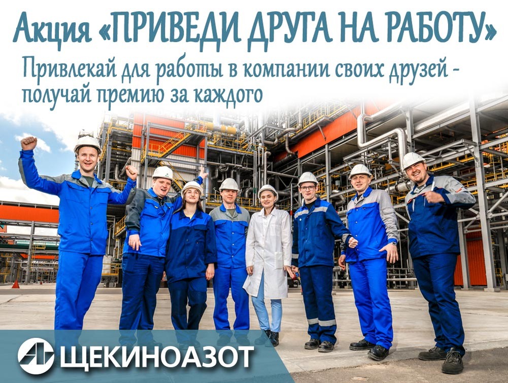 АО «Щекиноазот» проводит акцию — «Приведи друга на работу!». Участвовать могут любые сотрудники предприятия.