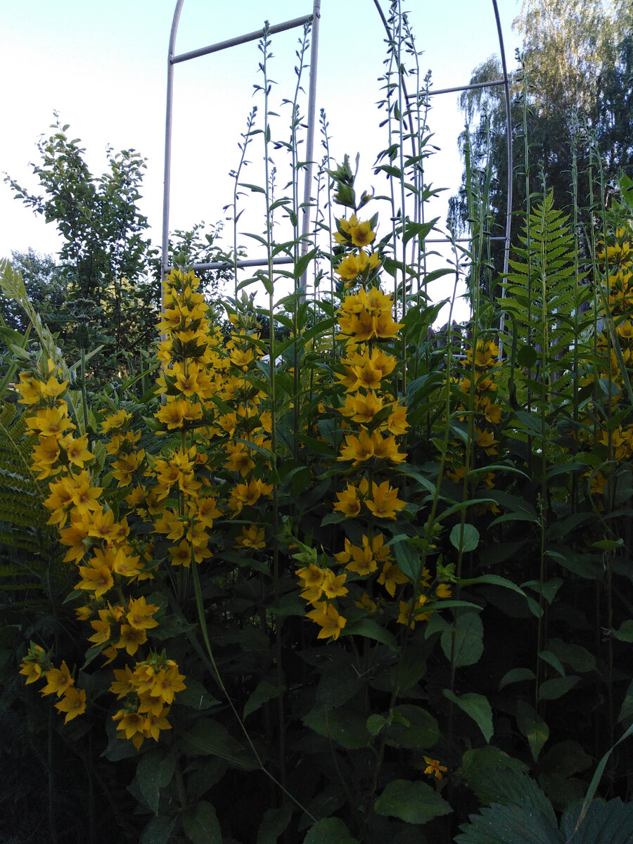 В отличие от своих собратьев по роду, вербейник монетчатый (у меня сорт Голдилокс) предпочитает полутень от крон деревьев. Поэтому посадила его в Подберезье.