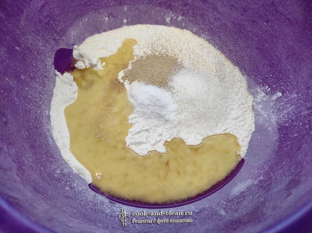 Вегетарианская пицца понравится тем, кто совсем не ест мясо и колбасные изделия. Тесто для пиццы можно сделать толстым или тонким. Всё будет зависить от того, как тонко вы само тесто раскатаете. В состав пиццы входят в основном лук и грибы. Вкусный сыр расплавится и соединит все ингредиенты воедино. Если вы заметили, в начинку для пиццы у меня входят перепелиные яйца. Это и красиво, и вкусно, и сытно получается. Для теста в глубокой миске смешиваем просеянную муку, соль, сахар, сухие дрожжи, растительное масло и тёплую воду. Замешиваем мягкое тесто в течении 5 минут. Накрываем миску с тестом полотенцем или пищевой плёнкой и ставим в тёплое место на 45 минут, чтобы тесто подошло. Поднявшееся тесто распределяем по противню, смазанному растительным маслом. Равномерно распределяем томатную пасту (или кетчуп) и майонез по всему тесту. На этом этапе можно посыпать тесто приправой для пиццы. Репчатый лук чистим от шелухи и нарезаем кольцами. Консервированные шампиньоны нарезаем тонкими ломтик