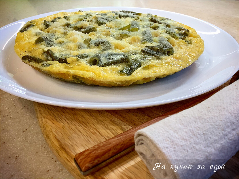 Сегодня у меня был омлет с замороженной стручковой фасолью, луком и сыром на сковороде. Такой омлет можно приготовить в духовке. Фасоль стручковая замороженная - 200 г Яйца - 3 шт. Лук репчатый - 1 шт. Молоко - 50 мл Масло растительное или сливочное по вкусу - 30 г Сыр твёрдый - 30 г Соль, перец - по вкусу 1. Фасоль я предварительно не размораживаю, сразу выкладываю на сковороду с маслом. 2. Пассерую на масле фасоль с мелко нарезанным луком. 3. Яйца взбиваю с молоком, добавляю соль и черный молотый перец. Можно добавить пряные травы по вкусу. 4. Когда фасоль станет мягкой, вливаю в сковороду яичную смесь и накрываю крышкой. 5. Запекать омлет под крышкой лучше на среднем огне. 6. Горячий омлет посыпаю сыр