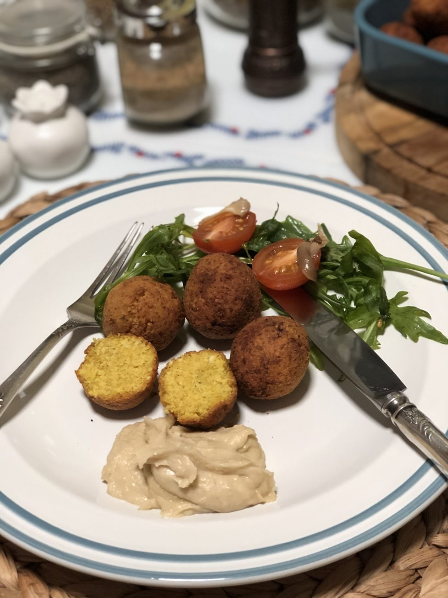 Блюдо, пришедшее с Ближнего Востока, не оставит равнодушным никого — ни веганов, ни просто любителей экзотики. Благодаря содержащимся в составе фалафеля ароматным и очень полезным травам и специям, эти желтые шарики несут в себе однозначную пользу, ведь куркума, орегано, базилик, зира, кориандр — кладезь витаминов, таких как витамины групп А, В, С, Е, D, К, РР, огромного количества микро и макроэлементов. Они благотворно влияют на весь организм человека — улучшают пищеварение, очищают печень, разглаживают морщины и т.д. Обязательно стоит приготовить эти полезные шарики, чтобы насладиться вкусом Востока, получить эстетическое удовольствие и прекрасный обед или ужин. Несмотря на незнакомое и сложное в произношении название, фалафель готовится совершенно несложно, а специи в блюдо добавим на свое усмотрение и согласно своему вкусу. Приступим? Пошаговый рецепт Ингредиенты