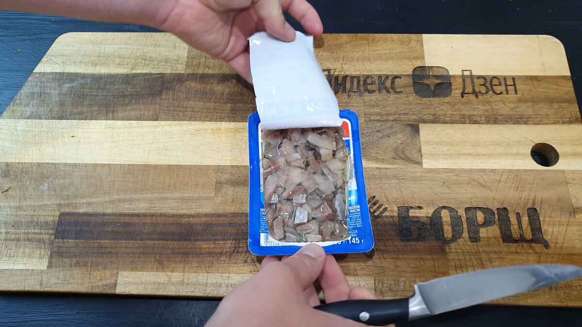 Необычный свежий салат с соленой сельдью (просто и очень вкусно)
