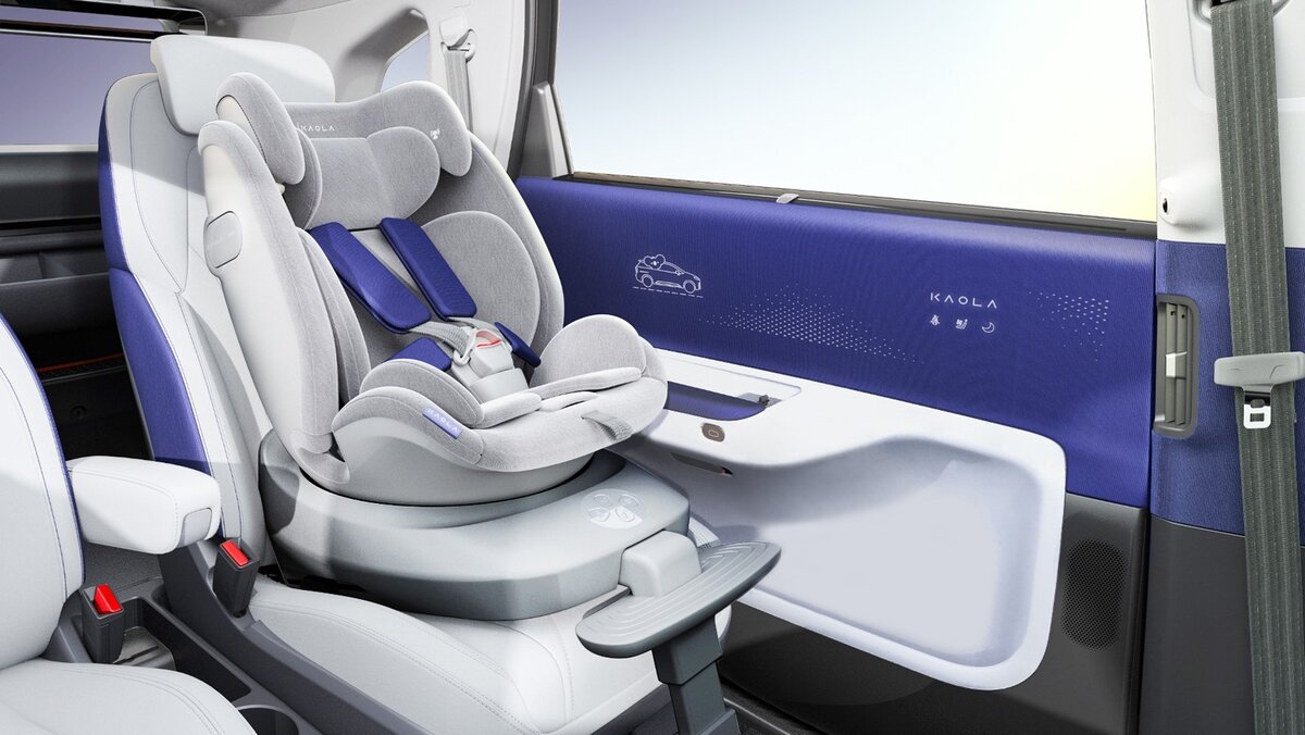 Китайская компания Arcfox представила прототип электромобиля Kaola, созданного с учетом потребностей семей с ребенком. За состоянием маленького пассажира следит камера в спинке водительского сиденья. Если малыш засыпает, машина переводит кресло в лежачее положение, а услышав плач, включает расслабляющую музыку и приглушает освещение. Датчики температуры в кресле сообщат родителям, если ребенок сделает под себя. Камера дополнительно распознает смех и делает снимки на память. Чтобы все было под контролем, картинка с камеры ребенка транслируется на экран мультимедиа, а температура в салоне отображается на дверной панели. Сама дверь со стороны малыша автоматически открывается перед человеком, при этом сиденье разворачивается для удобной посадки. Отдельным пунктом в меню мультимедиа есть функция планирования. Машина напоминает о консультациях с врачами, прививках, анализах и осмотрах. В интерьере использованы экологичные материалы, система кондиционирования оснащена специальным антибактериа