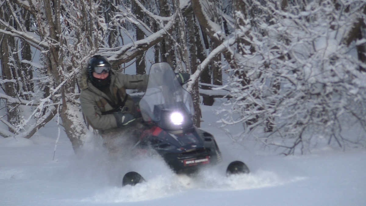 Я проверил как PROMAX SRX-700 PRO идёт по пухлому и глубокому снегу и сделаю для этого отдельное видео. Одному на таком снегоходе, вполне комфортно,я убидился еще с предыдущей серии снегохода PROMAX SRX-500. Это очень поворотливая техника в своем классе, за счет расширителей на лыжах и гусянки в 500 мм,которые не дают тонуть и зарываться снегоходу в глубоком снегу. Снега у нас выпало вполне дастаточно, местами говорят по пояс, но мне пока столько снега не удавалось найти. А вот по снегу выше колена, управляя одному верхом,на снегоход идёт вполне вольяжно и уверено и поворотливость по такому снегу увиличивается,но это нужно делать на скорости.Но при этом на скорости, надо самому перекидывать ногу, то на правую сторону,то на левую сторону,что бы резко повернуть вглубоком снегу. Далее ставя оби ноги на подножку,в ту сторону в которую поварачиваете.Тем самым,Вы становитесь балансом для снегохода и тогда, он становится очень послушным другом. Но вдвоём уже так не сделать.