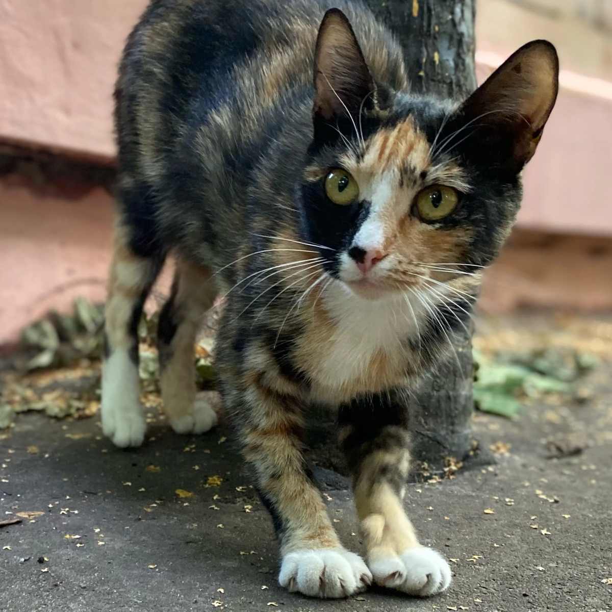 С Майей мы познакомились еще летом. Плоская как блошка, несчастная киска сама побежала навстречу, увидев что я кормлю других котеек. Но, заметив приближение тощей подруги по несчастью, пушистики тут же побросали тарелки и погнали ее через дворы. Мне было очень жалко Маечку, потому что на этом "празднике жизни" ей оказались не рады.