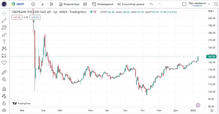 День радостный для всех долгосрочных инвесторов, так как на бирже появились объемы. И не где-то там в акциях 3-его эшалона, а у "голубых фишек". Финансовый сектор сегодня вытолкнул индекс Московской биржи на 📈+1,27% до отметки 2 186,98 пункта. Не думаю, что это разворот рынка, но мой внутренний оптимистичный инвестор крайне рад сегодняшнему росту. Итак, объемы торгов только акциями Сбера достигли 17 млрд. рублей, причем 90% этого объема пришлось на голосующие акции. Цена акций вернулась к уровню середины апреля 2022 года. Ожидания инвесторов строятся на потенциальной сильной отчетности компании за декабрь 2022 года, а также на, опять же, потенциальном возврате к дивидендным выплатам со стороны банка. Обыкновенные акции выросли за день на 📈4%, привилегированные - на 📈4,2%. Продолжим с финансовым сектором. Акции МКБ перешли дофевральский уровень, уверенно поднявшись на 📈2,9%. От общей эйфории не отстают и акции Московской биржи 📈2,8% за день. Не устаю напоминать, что финансовый сект