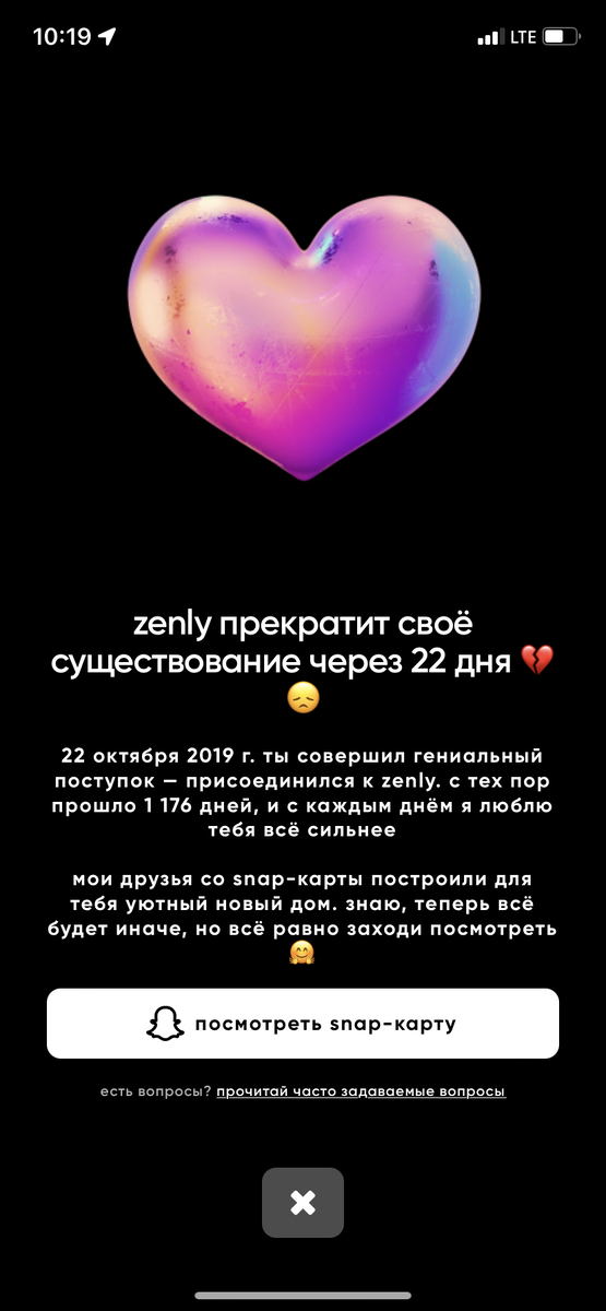 Многим полюбившееся приложение, которое позволяло узнать в любой момент где находятся сейчас твои друзья или родственники, Zenly закрывается😔 Об этом сообщают при заходе в приложении. Скриншот ниже👇 В самом предложении предлагается перейти в приложение Snapchat, в котором реализован, подобный Zenly, интерфейс, однако, скорее всего многим он не зайдёт. Однако, сейчас у бывших пользователей zenly наблюдается повышенный интерес к встроенному в iOS приложению «Локатор», который имеет схожий функционал и хорошо защищён. Поэтому, если у вас в окружении у многих было установлено Zenly на iPhone, напомните им о локаторе🙂