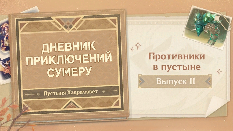 Привет, Путешественники! В этом выпуске мы расскажем о новых противниках, которые встретятся в пустыне. Внимание: в этом выпуске представлена только часть новых противников. Ещё больше о регионе Сумеру вы узнаете в новой версии!