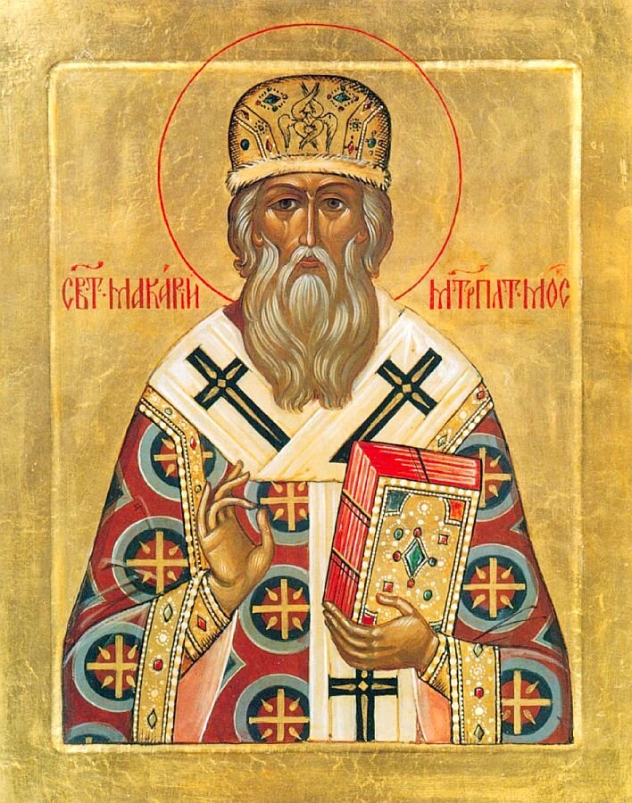 Святитель Макарий был главой Русской Церкви в царствование государя Иоанна Грозного. Родился будущий святой около 1482 года в благочестивой московской семье. Еще в юности он принял монашество в Пафнутиевом Боровском монастыре, а в 1506 году стал игуменом Рождества Богородицы Лужецкого монастыря в городе Можайске. В 1526 году Макарий был рукоположен в архиепископа Новгородского и Псковского. Святитель немало заботился о сохранении чистоты православного вероучения, а также внес огромный вклад в развитие древнерусской письменности, поставив перед собой цель собрать всю «чтомую» на Руси духовную литературу. Святитель создал грандиозный свод Великих Четьих Миней, которые вошли в историю под названием Макарьевских. В них были собраны жития множества святых, богословское и патриотическое наследие Русской Церкви. По инициативе святителя увидел свет первый систематический труд по русской истории -- «Книга степенная царского родословия». Немало усилий приложил святой Макарий при организации на Р