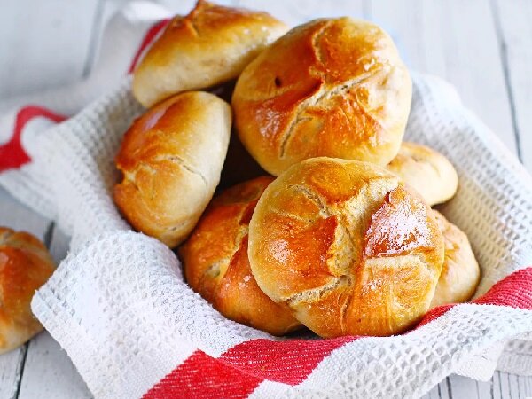 Пирожки у нее были традиционной формы — более длинные и плоские, но мне в последнее время нравится экспериментировать с их формой — у меня они получились, похожими на маленькие булочки.