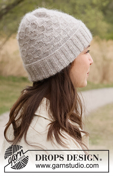 Шапка из пряжи DROPS Sky / DROPS Merino Extra Fine и DROPS Kid-Silk вяжется снизу вверх узором «соты». Размеры: S/M - M/L - L/XL