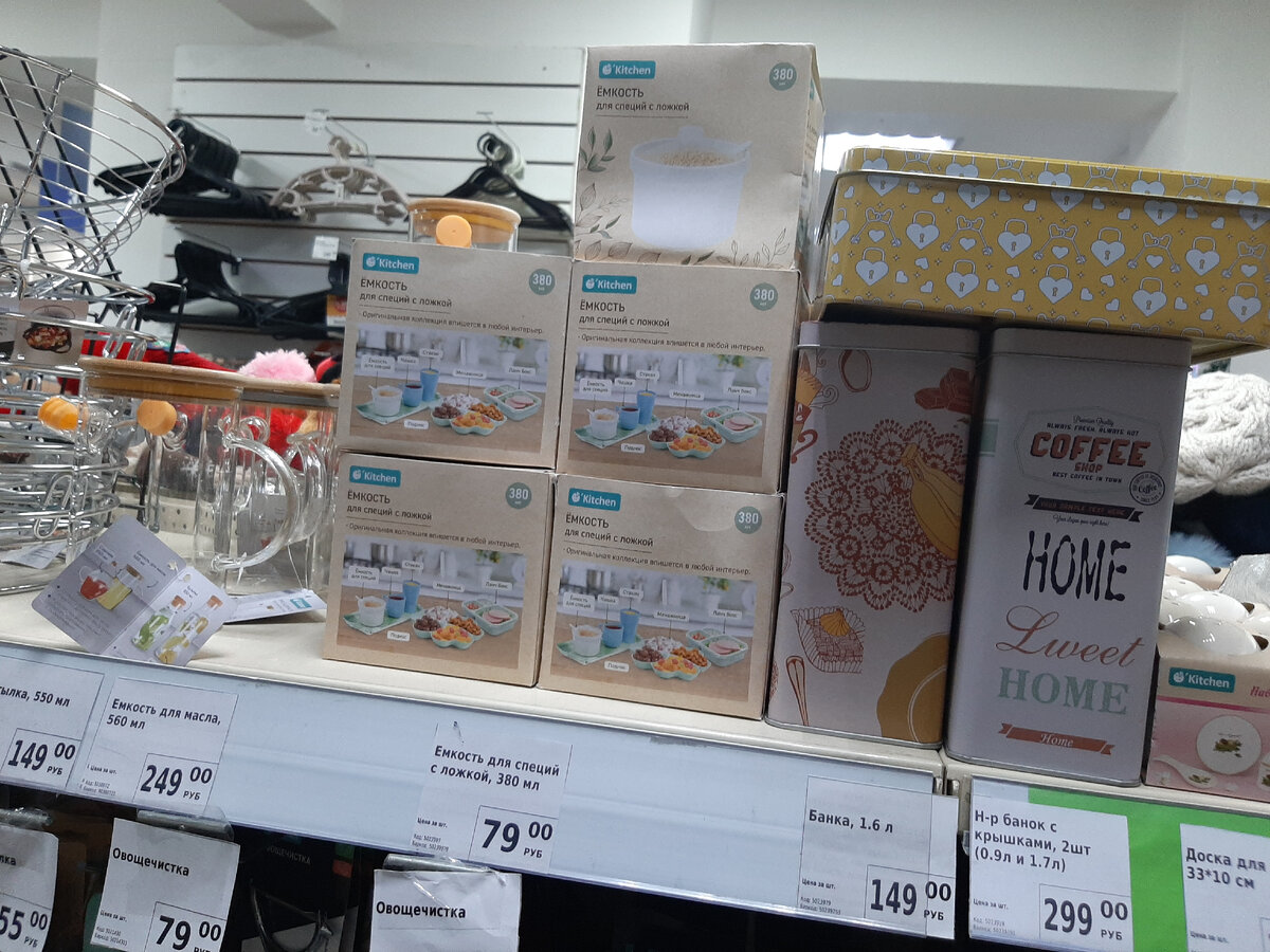 Добрый день, уважаемые читатели! Рада вновь видеть вас в своём обзоре интересных НОВИНОЧЕК из Fix-Price. Возможно, что-то из этого завезли и раньше наступления Нового 2023 года, но мы вместе с вами это ещё не смотрели, по крайней мере, я точно) Поэтому приглашаю и вас пролистнуть все фото (они увеличиваются по клику, если нужно рассмотреть детали), кто знает - может быть что-то из найденного вам тоже пригодится. Чем больше лайков соберёт материал, тем чаще будут выходить обзоры из этого разнопланового магазинчика! Начинаем обзор с кухонных полочек и тут очень много всего. Например, жестяные банки с крышками (но они появились раньше, просто отмечаю, что до сих пор в наличии). Интересно, что слева можно заметить стеклянную ёмкость для масла с бамбуковой крышкой, хотя вначале может показаться, что это заварочный чайник) Ну, а мы с вами в этот раз рассмотрим внимательнее ёмкость для специй с ложкой. Объём посуды - 380 мл, цена - 79 рублей. Данная баночка входит в отдельную коллекцию