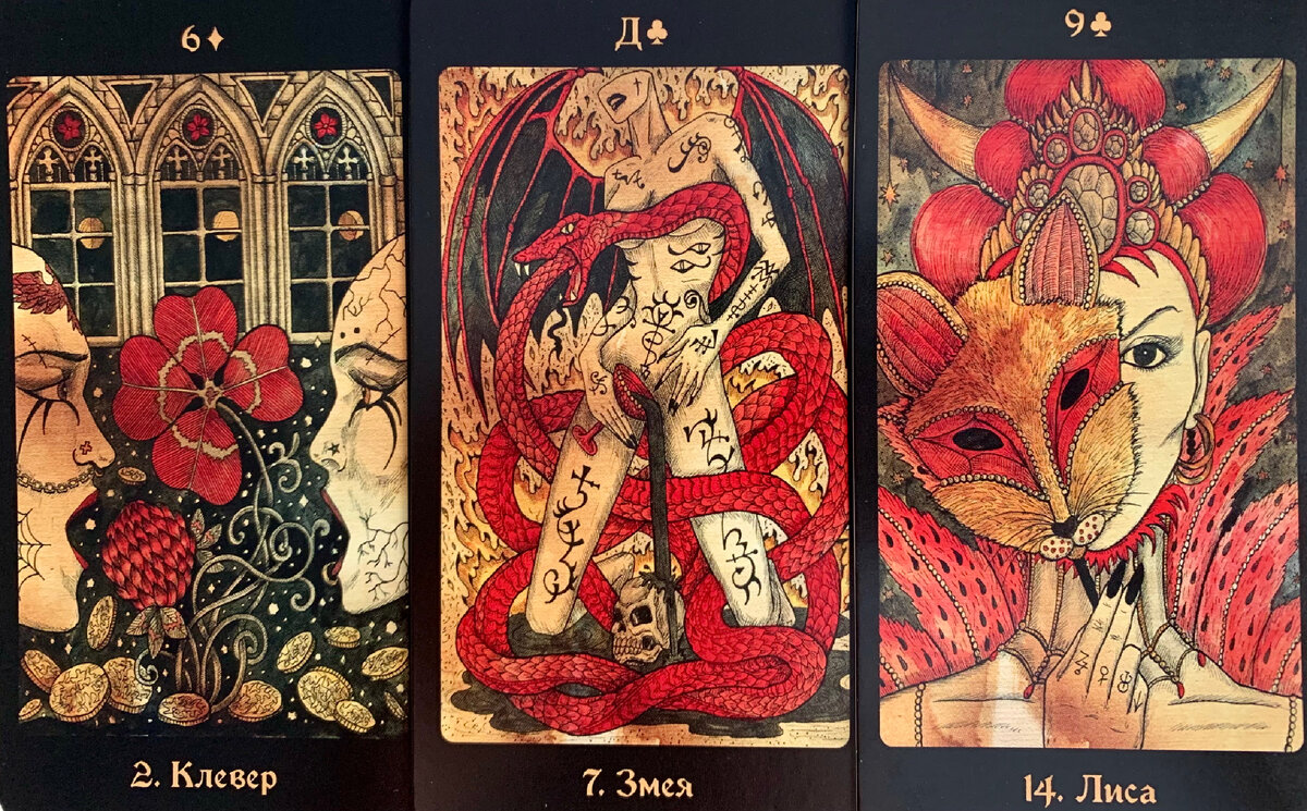 В этой колоде на карте Сердце изображена женщина, у которой сердце находится там, где должна быть голова.