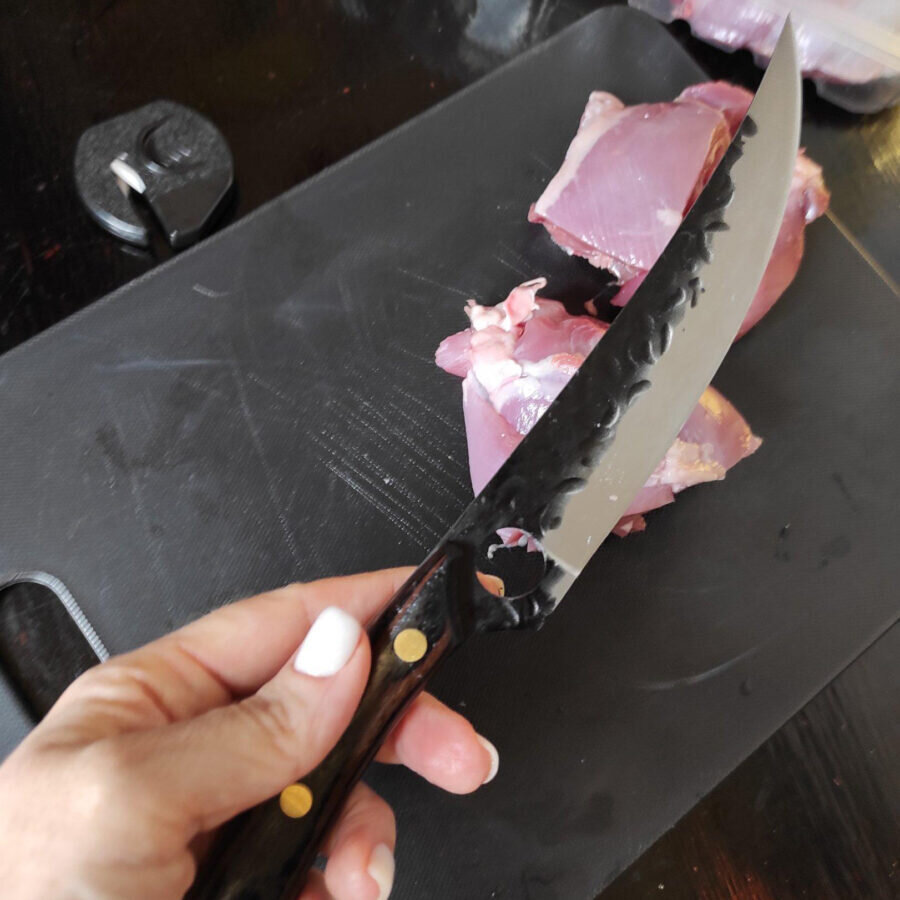 Ищете отличный кухонный нож? Такой, чтобы им и мясо порезать и зелень порубить было можно? Вот этот как раз такой вариант. Ножи из этого магазина острейшие. Если дома дети и пожилые люди, лучше уберите от них, честно. Пользоваться можно только тем, кто уверен в своих движениях. Приходит нож в фирменной коробке, запечатанной со всех сторон. Внутри коробки пенопласт, лезвие упаковано в картонную защиту, и ещё острие ножа закрыто силиконовой накладкой. Все это для того, чтобы минимизировать возможность случайных порезов при вскрытии упаковки. Повторюсь, нож очень острый. Продавец ещё положил точилку в заказ, но она еще понадобится не скоро. Мясо режет как подтаявшее сливочное масло. Ручка у ножа пластиковая с фактурой дерева. Лезвие с молотковой ковкой. Приобрести острый универсальный нож вы можете по ссылке ниже. Острый нож купить