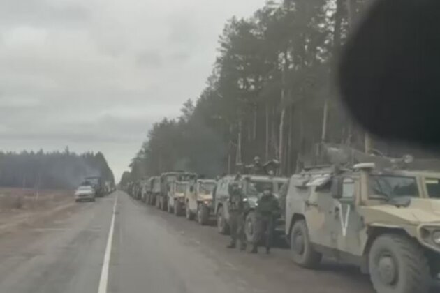 Огромнейшая колонна из 250 единиц военной техники в районе Киева попала на видео