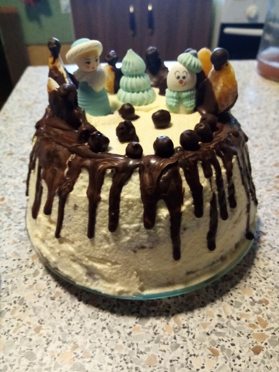 Сегодня испекла торт для своих любимых домочадцев. Прошу вас не судить строго, я не профессионал. Но хочется чего-то новогоднего. Надеюсь будет вкусно.