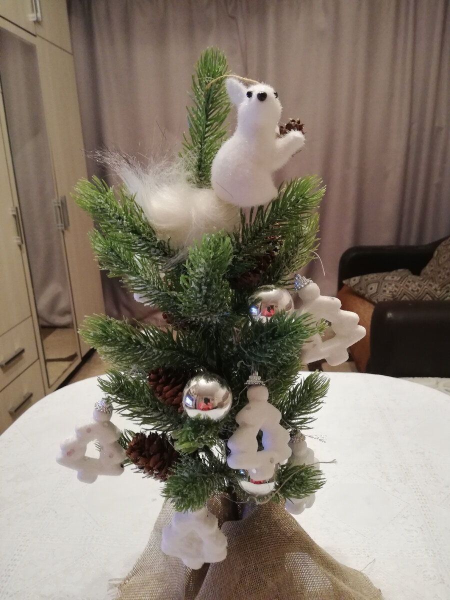 Не собиралась я елочку ставить ,даже ныне игрушки не доставала.вчера сын мне привез еловых веток из леса ,а у них иголки сразу начали отпадывать.Пришлось выбросить.