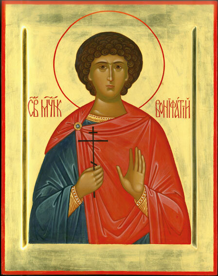 ХРАНИ МЕРНОСТЬ — БОГАТ БУДИШИ; ВОЗДЕРЖНО ПИЙ, МАЛО ЯЖДЬ — ЗДРАВ БУДИШИ; ТВОРИ БЛАГО, БЕГАЙ ЗЛАГО — СПАСЕН БУДИШИ. Из духовного завещания святителя Митрофана Воронежского Мученик Вонифатий Мученику Вонифатию молятся об избавлении от страстей пьянства и распутства. Его память совершается 1 января. Всем известно, что происходит в этот день: миллионы людей на планете отмечают его как начало Нового года за обильно уставленными столами -- со всеми вытекающими отсюда последствиями. Впрочем, как пишет святитель Димитрий Ростовский в житии мученика Вонифатия, «прекрасно то услаждающее сердце повествование, в котором мы слышим, что грешник, по-видимому не имеющий надежды на спасение, становится сверх ожидания святым, и притом мучеником Христовым -- подобно святому Вонифатию, который во время любострастной жизни служил греху, а потом соделался исповедником, доблестным подвижником и славным страдальцем за Христа». Незамужняя дочь бывшего римского градоначальника Аглаида, красивая и богатая, держал