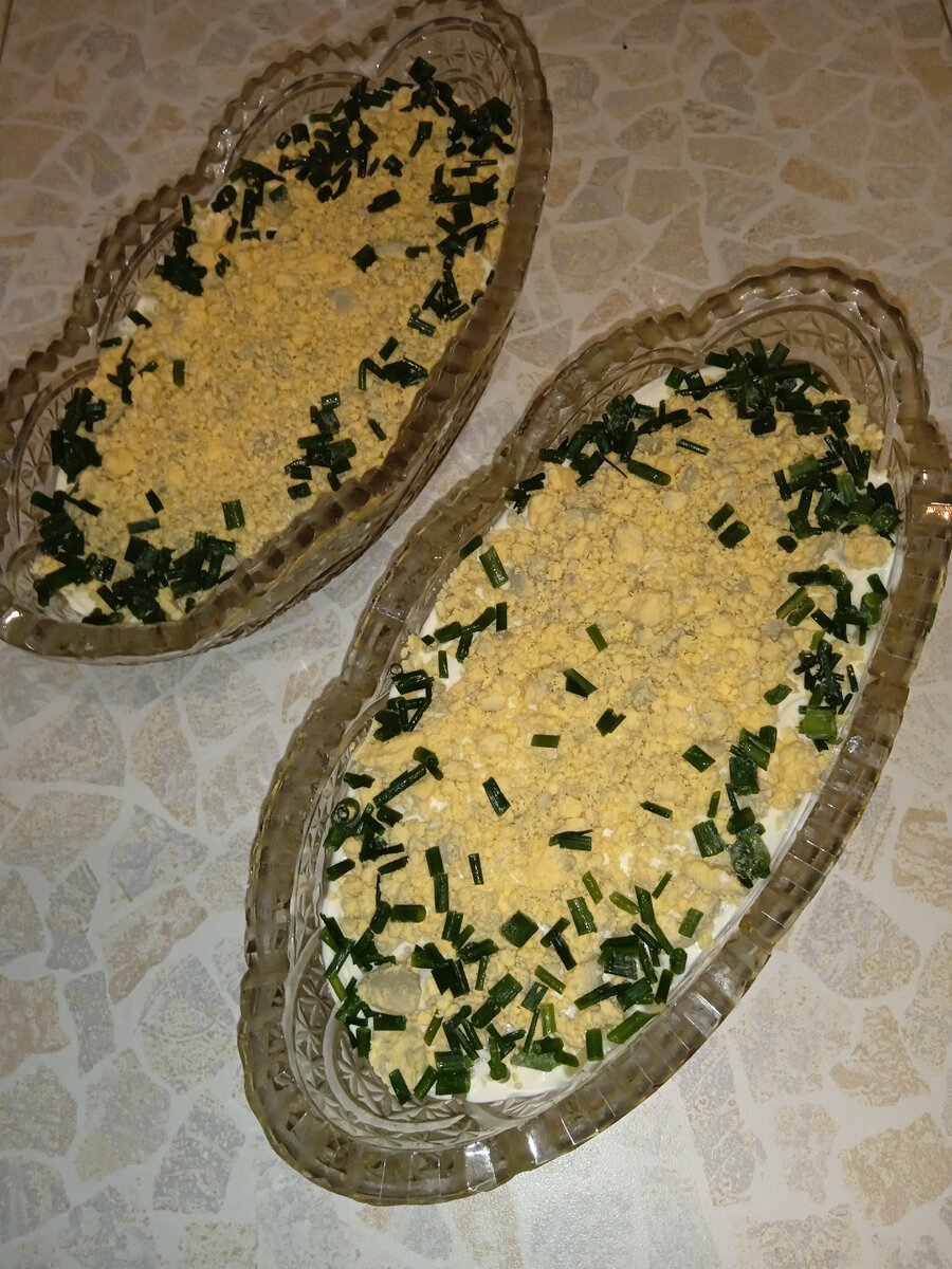 Когда я училась в четвёртом классе, у нас начались уроки труда раздельные для девочек и мальчиков. Нас учили шить и готовить. Однажды, накануне 23 февраля, мы готовили салат " Мимоза". Не думаю, что этот салат был в обязательной программе, скорее это была инициатива нашего учителя. Учитель распределила между девочками, кто какие продукты должен принести. На уроке мы приготовили салат. А после урока угостили наших мальчиков. Через несколько лет я приготовила "Мимозу" дома на новый год. С тех пор, этот салат стал традиционным новогодним блюдом в нашей семье. Для приготовления салата потребуется: сардина в масле или в собственном соку, луковица, варёные яйца, варёный картофель, варёная морковь, майонез, зелень для украшения. Первый слой - рыба размятая вилкой. Немного майонеза, чтобы смазать слой. Второй слой - мелко нарезанный лук, майонез. Для третьего слоя необходимо отделить желтки от белков. Третий слой - мелко нарезанный белок. Майонез. Четвертый слой - натертая на крупной