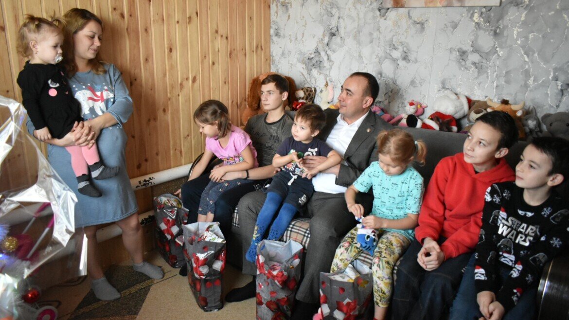Глава Буинского района Татарстана Ранис Камартдинов навестил многодетную семью. Глава семьи, Булат, сейчас участвует в специальной военной операции на Украине. Он и его супруга Ольга воспитывают одну общую дочь, Марьям. При этом вскоре в семье ожидают появления еще одного ребенка. Об этом в своем Telegram-канале рассказал Ранис Камартдинов. «Семья в ожидании появления пятого малыша, и мы верим, что вскоре его папа вернётся домой живой и здоровый, с победой», — написал глава Буинского района. В гости вместе с отцом пришли и сыновья Раниса Камартдинова, они вместе передали подарки. «Рамзан и Рахим тоже внесли свой вклад — подарили малышам шоколадки. Пусть беззаботной будет жизнь всех детей! Поддержку всех семей мобилизованных мужчин района мы продолжаем. Пусть наступающий год убережет от невзгод! Пусть 2023 год будет счастливым для каждой семьи!» — заявил глава. Как рассказали «Татар-информу» в администрации, эта семья стала первой в серии встреч главы района и его заместителей с родстве