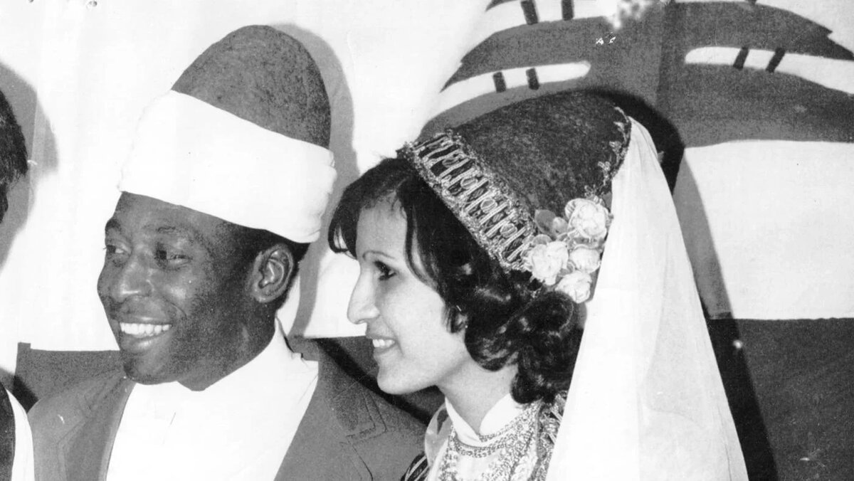 Оказывается, "Король футбола" не только приезжал в Ливан, но и однажды сыграл на местном стадионе в дружественном матче двух ливанских команд в составе одной из них. Подтверждающие это событие фотографии были недавно опубликованы на одном из ливанских информационных ресурсов и сегодня я ими с вами тоже поделюсь. Визит в Ливан состоялся в самом начале апреля 1975 года,всего за несколько дней до того, как в Ливане началась длившаяся около 15 лет гражданская война. На фото ниже он в ливанской национальной шапке. Встречались на футбольном поле две местные команды.Команда французского университета и команда "Звезда" (нэжма), в составе которой и сыграл величайший в истории футболист. Для него даже сделали специальную футболку с надписью "Король Пеле"", подлизались. Пишут, что сам Пеле отыграл только первый тайм. Но команда выиграла матч, потому как два ливанских футболиста забили противникам по голу. Кроме того, что немного поиграл на поле в составе одной из ливанских команд, Пеле провел