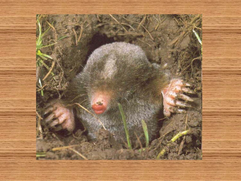 Может ли крот видеть? Крот — одно из самых интересных животных. Кроты живут почти по всей территории Соединенных Штатов, и их насчитывается около 50 различных видов. Но люди видят их настолько редко, что они считаются какими-то таинственными существами. Крота можно найти там, где на полях видны борозды перерытой земли. Это крыша туннеля крота, так как всю жизнь он проводит в темноте подземлей. Кроты вырастают до 15 сантиметров в длину. У них нежный бархатистый мех мышиного цвета, а хвост достигает 3 сантиметров в длину. У них совсем нет шеи, а уши представляют собой небольшие отверстия, спрятанные под шерстью. У крота есть глазки, но это — всего лишь небольшие бусинки, прикрытые шерстью и кожей. Поэтому когда-то считалось, что кроты слепые. Крот видит, но очень плохо. Если вы возьмете крота и опустите его на землю, то он сразу же начнет бегать в поисках мягкого грунта и, как только найдет такое место, тут же начнет копать. Крот вообще один из лучших копальщиков в природе. У него мощные