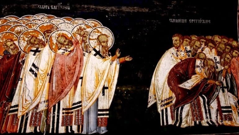 Анафема предполагает, что о человеке в Церкви больше не молятся, его не поминают, не соборуют, не исповедуют, не допускают к евхаристии, не отпевают. До революции таких людей хоронили за церковной оградой на неосвящённой земле, креста на могиле не ставили. Полное изгнание Впервые об анафеме упоминает апостол Павел в посланиях к Галатам (Гал. 1:8-9) и в Первом послании к Коринфянам (1Кор.16:22). В Посланиях говорится, что анафеме предают тех, кто искажает слово Божье и кто «...не любит Господа Иисуса Христа». Само слово произошло от греческого слова ἀνατίθημι, что переводится как «накладывать, возлагать». Оно означало жертву, которую приносят Богу, но при переводе Писания с греческого переводчики означили словом ἀνατίθημι древнееврейское слово herem, которое означало «обречённое на кончину, проклятое». Так словом «анафема» стали обозначать то, что отвержено людьми. «Православная энциклопедия» указывает, что анафему не стоит путать с временным отлучением, которое было наказанием за грех