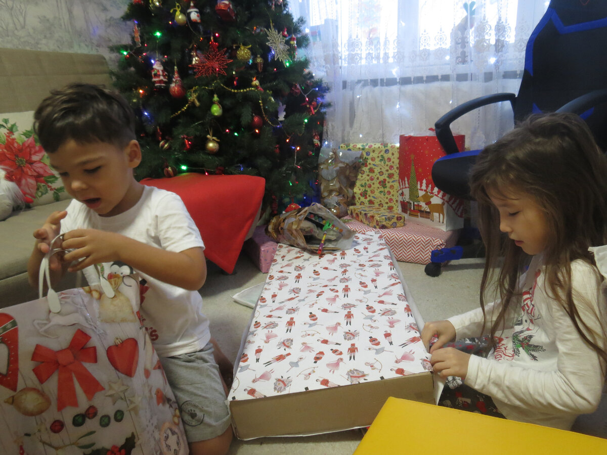 Прошедший год для нашей семьи был морально очень тяжелым и честно я очень рада, что он наконец закончился. Так что этот Новый год мы встречали под девизом ЛАЙТ! Никто, никуда не торопился. С утра ребятишки дали мне выспаться. Когда я их похвалила, Марго ответила, то они старались, так как боялись. Конечно, угроза остаться дома и лишиться половины подарков была очень страшной :))) Но при этом Маргоша призналась, что они тихонечко бегали в зал, что бы посмотреть на подарки :))) А разбудил меня Егорка. Которого я пыталась с вечера уложить в их комнате, но он все же снова спал со мной. Но утром он решил, что раз он спал не в своей кроватке, то дед Мороз ему ничего не принес и решил перейти ради подарков досыпать в свою кровать :)))) И это полдесятого утра. В общем подарки открыли, дети счастливы. Раньше я принималась за готовку, а Вадюха собирал и подключал новые игрушки. А в этот раз мне пришлось делать выбор и он был не в пользу готовки :))) Мы собирали аэропорт, новую парковку, веша
