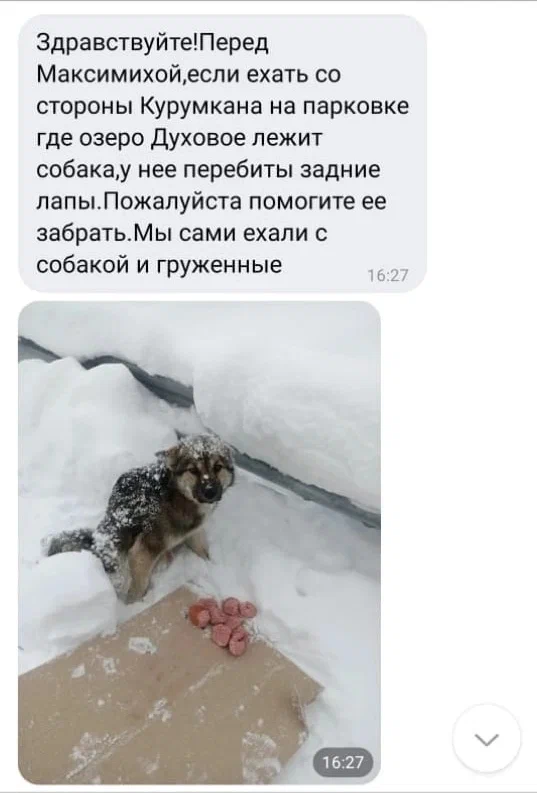 Дорогие друзья! Собачка спасена и привезена в приют. Ночью мы писали о том, что спасаем песика. С большим трудом ее под утро доставили в приют. Расстояние оттуда почти 400 километров! Заплатили за доставку 25000, деньги взяли с собачьего корма приюта! Место где был песик, очень глухое. там просто озеро и пару туалетов, и дальше тайга, температура была там под 40 мороза! Когда песика доставили в приют, то выяснилось, что у собачки огнестрельное ранение в лапку, сквозное! Песик нуждается в оперативном лечении, сегодня его отвезут в клинику, а это очень большие затраты на лечение, поэтому просим всех помочь нашему новогоднему спасенышу! Благодарим всех кто переживал и помогал доставить песика в приют! Для желающих помочь в спасении собачки, реквизиты ниже: ✅ карта сбербанка 2202203225753641 (моб банк 89085937820) ✅Карта ВТБ банка 2200 2407 9527 3461 ✅ТИНЬКОФФ- 5536914035456577 (Все карты на хозяйку приюта Валентину Макаровну Кушнареву) ✅Юмани-410018617087444 https://yoomoney.ru/to/4100186