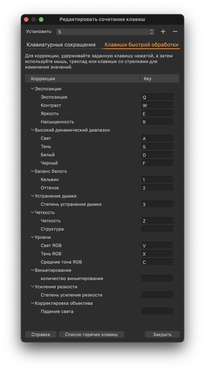 Незнание горячих клавиш не освобождает от ответственности. Стоит выучить их раз и навсегда ведь все клавиатурные сокращения избавляют от взгляда экран-клавиатура-экран. Speed Edit в Capture One В Capture One 14 появилась функция быстрой обработки. Если зажать одну из указанных клавиш и покрутить колесо мыши или трекпада - можно изменить значение параметра, с которым связана клавиша. Данная функция значительно ускоряет обработку, позволяя базируясь на пресетах, быстро редактировать те характеристики, которые востребованы наиболее часто. Исключает схему Найти ползунок глазами – навести мышку – потянуть мышкой – убедиться что все хорошо на экране – найти другой ползунок Заменяет в значительной степени панели типа LoopDeck, Tangent и тп. и само по себе бесплатно. Помимо таких клавиш Быстрой Коррекции есть еще и базовые клавиатурные сокращения, которые работают не только в кепчуре, но и в фотошопе и аффинити. Изменение Размера и Жесткости кисти: Размер: Жесткость: Такой же подход к пара