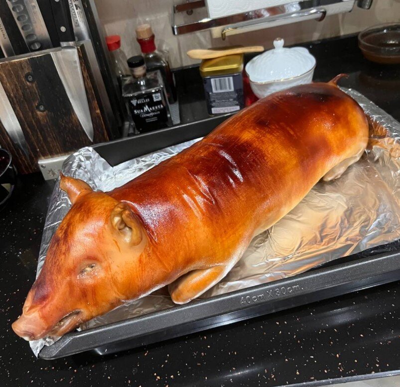 Вот шикарное блюдо для праздничного стола. Обычно его готовят для особых случаев и праздников, например, на Новый год. Посмотрите, какая румяная корочка, ммм…, а внутри еще есть начинка. Что вы видите на фото? Нет, это не изделие из теста, это оно… порося. Молочный поросенок – это детеныш свиньи, возраста не более 2х месяцев, до этого времени животное питается только молоком матери, отсюда и название. В этом мясе очень мало жира, поэтому оно считается диетическим, полезным и нежным на вкус. Выглядит такой поросенок так. Современного человека может плющить от такого конфликта: с одной стороны, он видит в поросенке еще недавно живое существо, создает различные проекции, с другой стороны, человек ест мясо, ему вкусно и ему нужны аминокислоты. Было бы удобнее смотреть просто на кусок в тарелке, в котором ничто не фокусирует взгляд на сути, то есть вроде все понятно, но это не помещается на передний план восприятия или вовсе вытесняется. Можно попасть в абсолютно идиотскую ситуацию,